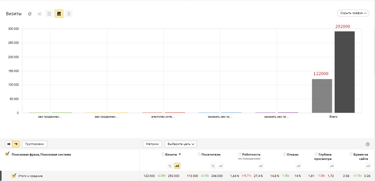 - Увеличение визитов до 292 000 по не брендовым запросам