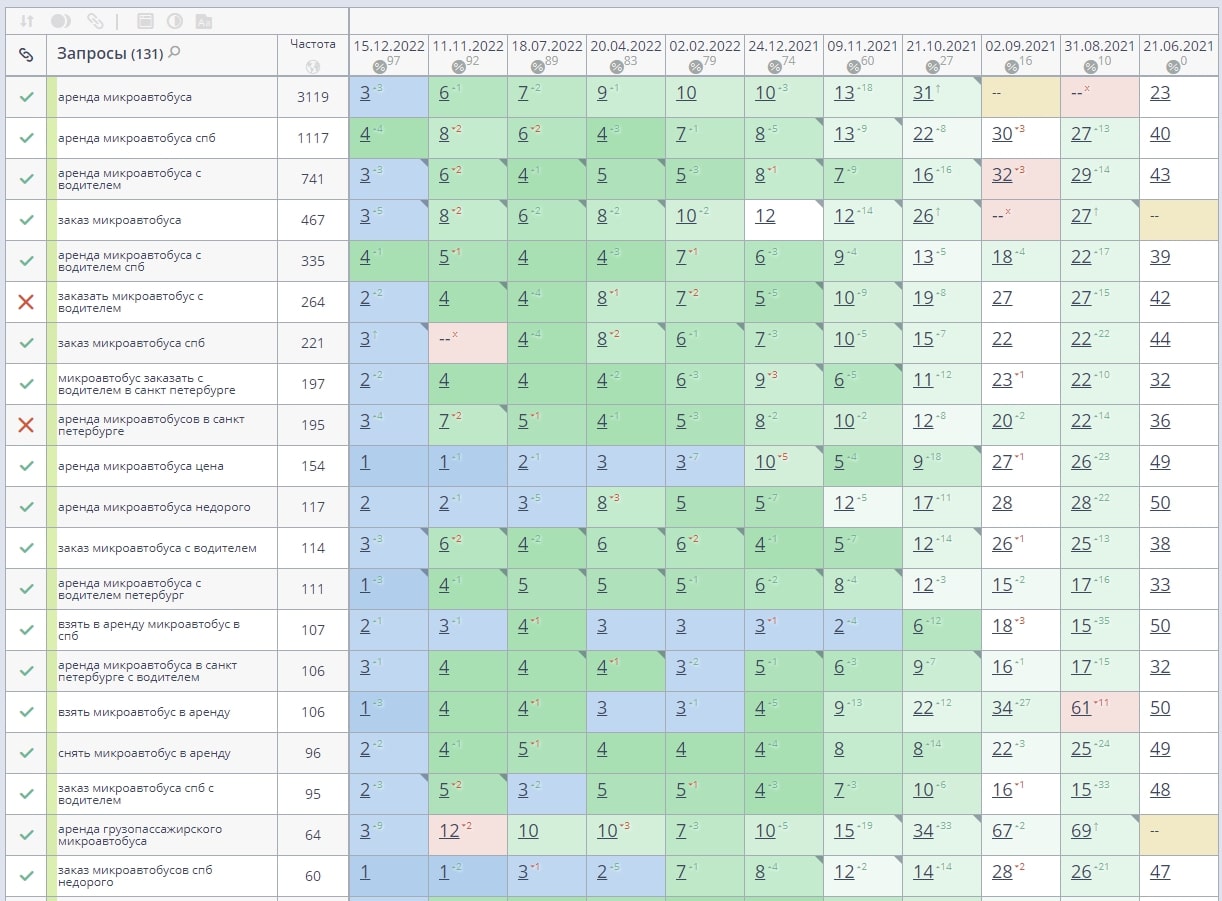 Сбор высокочастотных и среднечастотных запросов по теме аренды автобусов и микроавтобусов (аренда с водителем, на свадьбы, перевозка пассажиров, трансферы и т.д.), оптимизация страниц сайта под запросы для их выведения в ТОП-10 выдачи поисковых систем.
