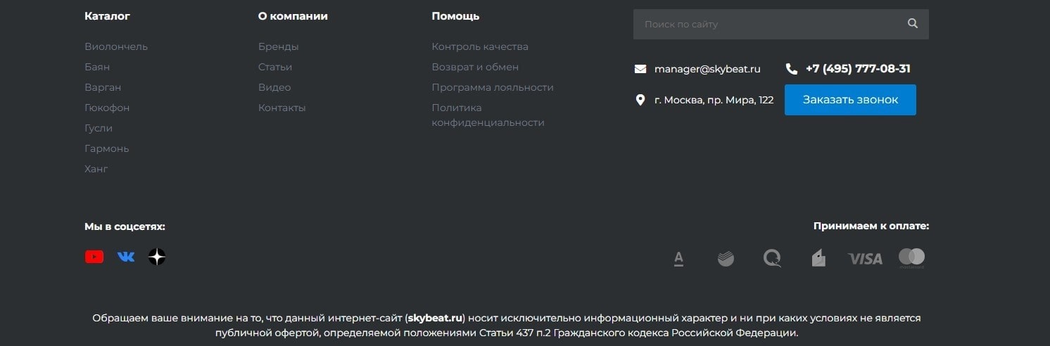 Отрисован и внедрен на сайт новый макет подвала сайта.