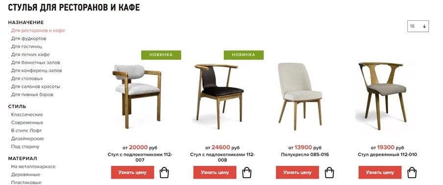 Изменена логика вывода товаров в каталоге – цены и кнопки у товаров теперь выводятся без наведения на них. Также добавлены плашки у товаров вида “Новинка”, “Хит продаж”, “В шоу-руме”: