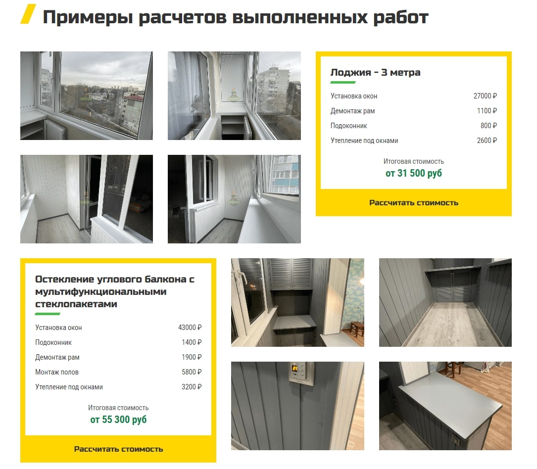 1. На страницах услуг вывели фото выполненных работ.