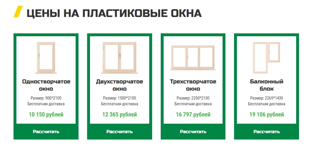 1. Добавили блок цен для окон для улучшения коммерческого фактора и увеличения вхождения ключей на странице.