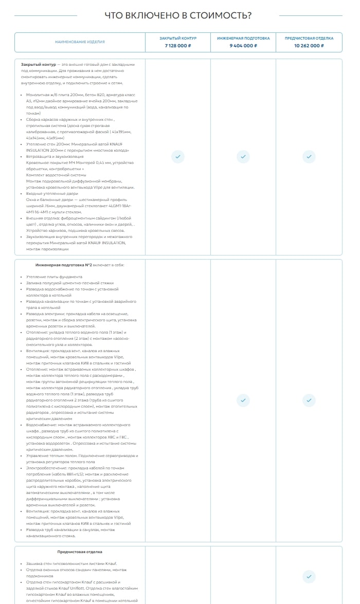 • Добавление цен и информации о проектах: на страницах проектов опубликованы актуальные цены и подробные описания домов.