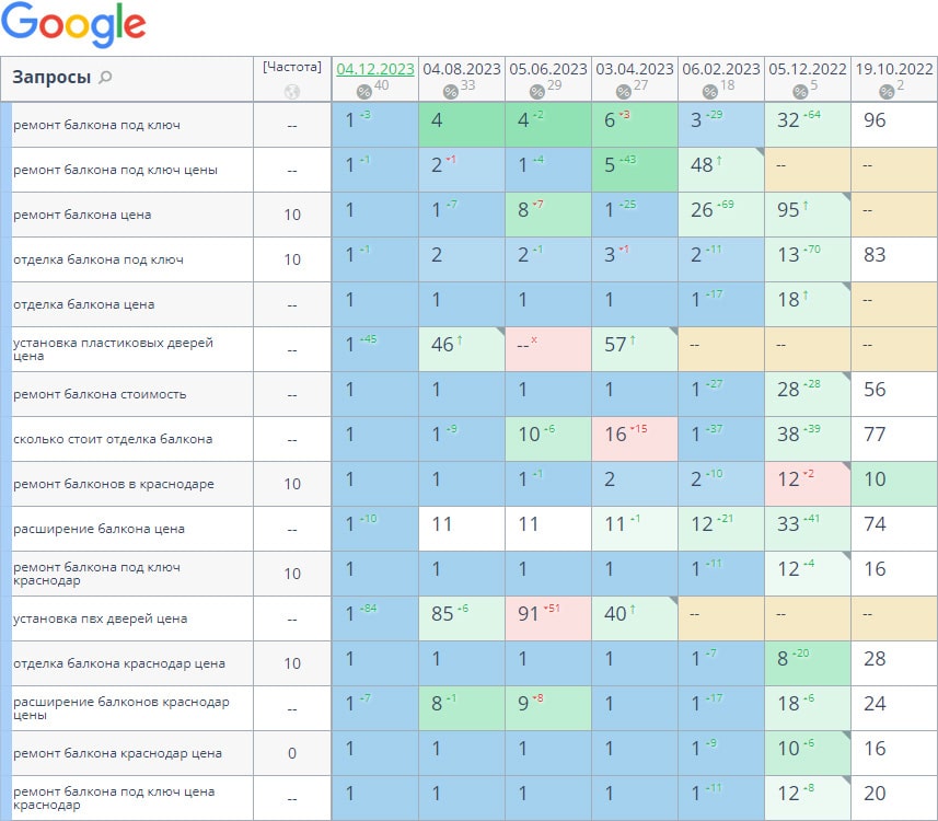 Клиент обратился с запросом: вывести позиции сайта в выдаче Яндекс и Google в ТОП-10.