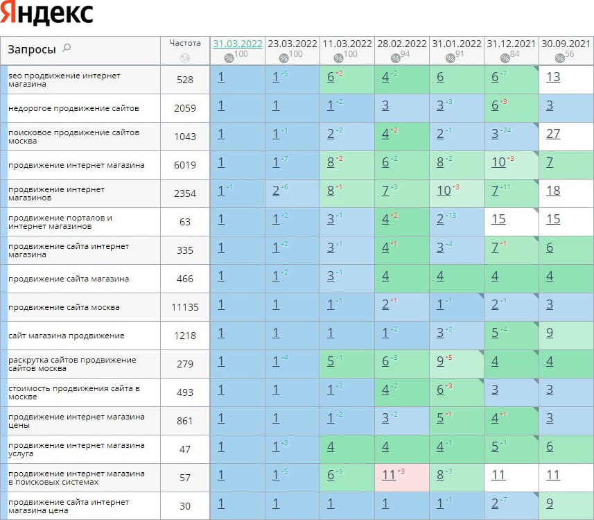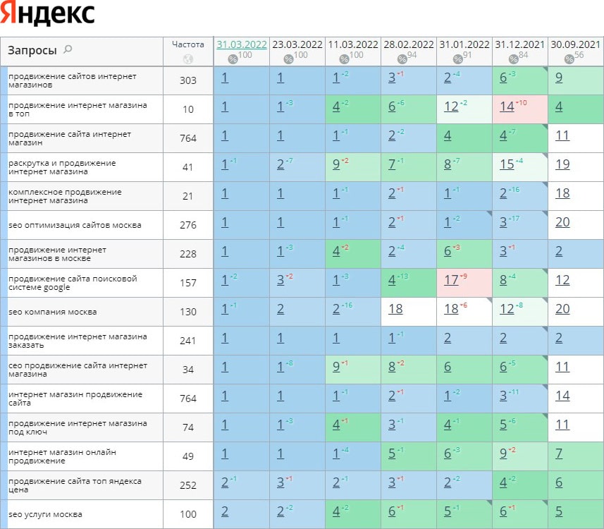 За время работы нам удалось поднять позиции с 21% до 79% в ТОП-10 с 0% до 67% в ТОП-3. Трафик увеличился на 73%, а количество заявок в 3 раза. И так будет с каждым проектом!